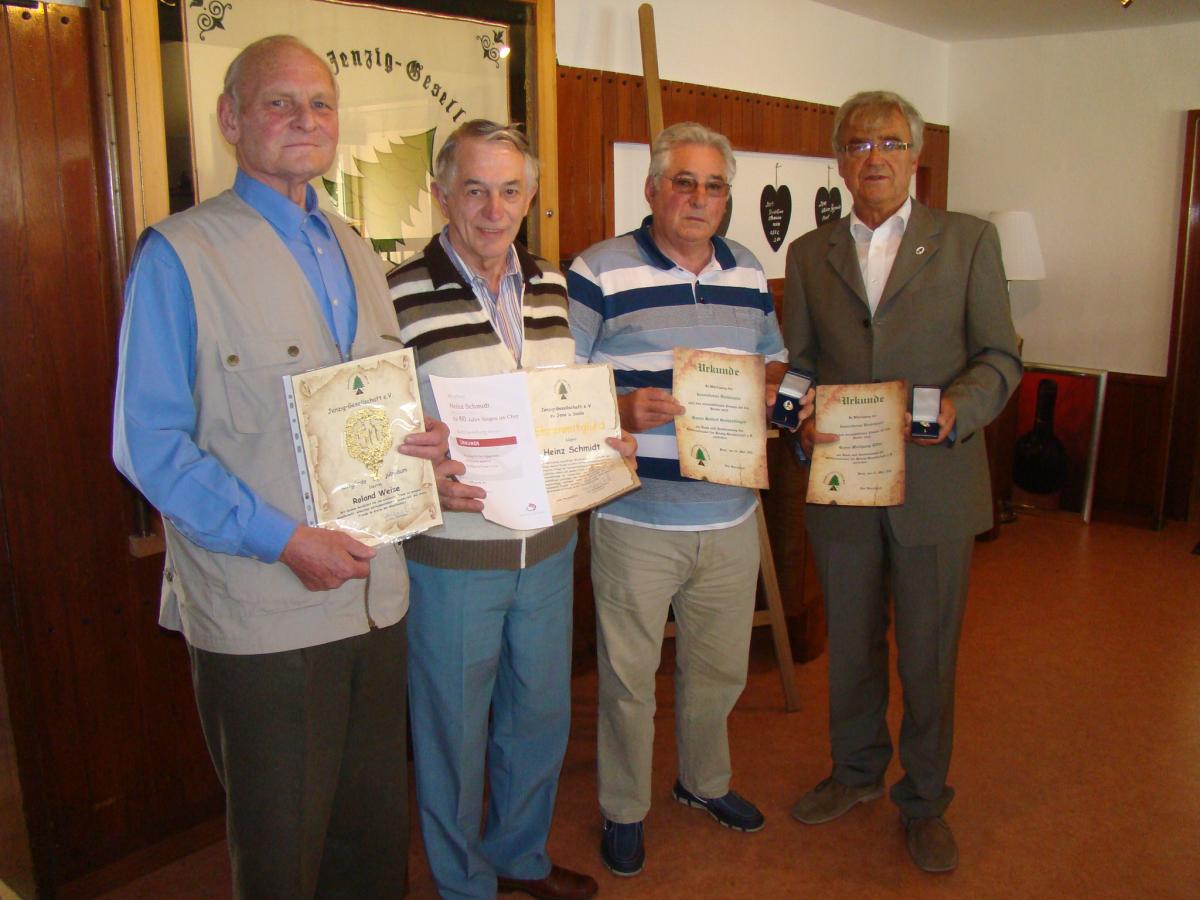 Als Jubilar konnte geehrt werden Herr Roland Weise für 50 Jahre Mitgliedschaft, ein weiteres Ehrenmitglied, Herr Heinz Schmidt, wurde mit der Ehrenurkunde der Gesellschaft ausgezeichnet. Erstmals erfolgte die Ehrung mit der "Verdienstnadel der Jenzig-Gesellschaft e.V." für vorbildliches Wirken zum Wohle der Gesellschaft. Diese Ehrung wurde in diesem Jahr zuteil den Herren Helmut Brunner, Gerhard Klingebiel, Rudolf Gerhardinger und Wolfgang Eifler.