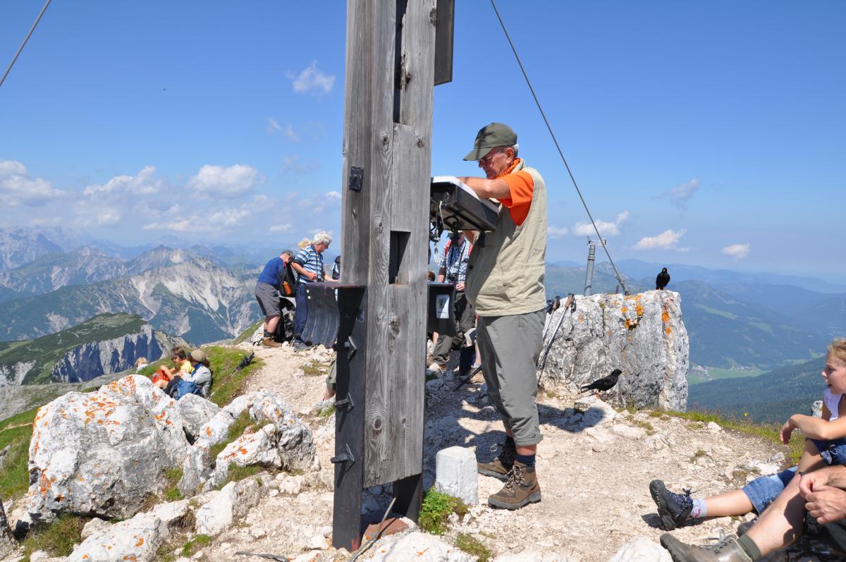 Eintrag in das Gipfelbuch durch HansJoachim, unserem Wanderleiter