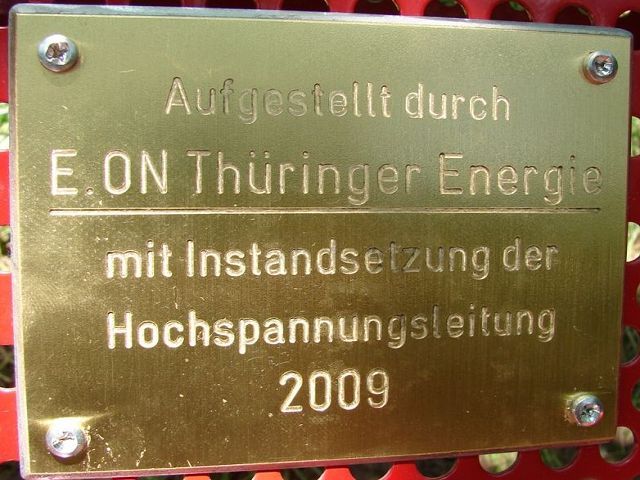 Gestiftet von EON im Zuge der Neuinstallation der 100kv-Hochspannungsleitung. Übergabe der Bank durch Herrn Bahmann (Bauleiter) an die Jenziger, Herren Eifler und Gerhardinger -Sept.2009