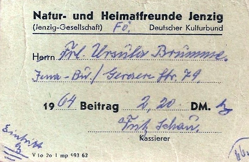 Frau Ursula Brumme heiratete Herrn Eberhard Brömer, den Sohn des langjährigen und verdienten Vorsitzenden Otto Brömer und nimmt heute rege an den Veranstaltungen der Jenzig-Gesellschaft teil.