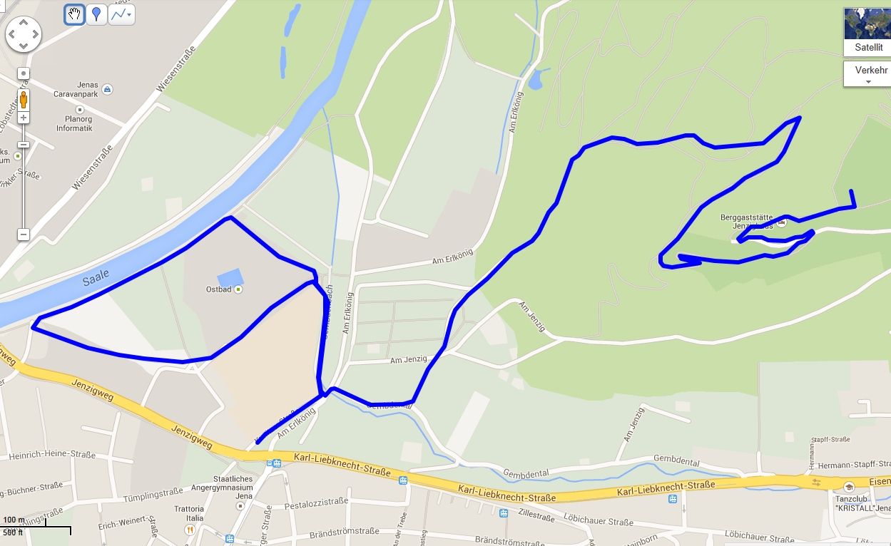 Der Start erfolgte wie immer 18.30 Uhr. Erstmalig wurde die Strecke etwas geändert und ist damit 4,75 km lang, der Start erfolgte ab Tunnel /Kunitzer Straße, es folgte eine Runde um das Ostbad, dann führt die Strecke zum Jenzig über den Nord-Weg,die stärkste Steigung im Wald hinauf, dann über den Zick-Zack Weg (Jenzig-Fußweg) hinter der Jenzig-Gaststätte bis zum Zieleinlauf auf der Jenzig-Wiese.