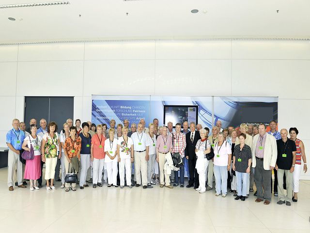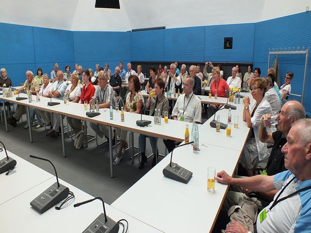 Ein wirklich tolles Erlebnis für 20 Jenziger! Wir weilten auf Einladung des MdB Herrn Dr. Peter Röhlinger im sommerlichen Berlin. Nach dem Eintreffen Mittagsessen, dann Besuch im Bundes-Presseamt, anschließend Kahnpartie auf der Spree mit Abendimbiss und "check in" im Euro-Hotel Neukölln. Dann ließen wir das Halbfinalspiel auf uns einwirken - hier kein entsprechender Kommentar zum Ergebnis! Früh 8.00 Uhr Abfahrt zum Bundestag, Teilnahme an einer Plenarsitzung (60 min) -wir durften Herrn Röhlinger vor Beginn der Sitzung von der Tribüne aus herzlich zuwinken, was er auch gern erwiderte. Ein obligatorischer Fototermin mit Dr. Röhlinger und Fraktionskollegen schloß sich an, dann endlich Zutritt zur sonnenüberfluteten Prachtkuppel des Reichstages -ein besonderes Erlebnis! Nach dem Mittagsesse dann noch ein weiterer Termin mit dem Besuch des Bundesratsgebäudes und -plenarsaales, in dem dann 22.00 Uhr die Sondersitzung zum "Euroschirm" stattfinden sollte. Erschöpft, auch von der Hitze, hieß es dann einsteigen und nichts wie heim! An dieser Stelle nochmals recht herzlichen Dank an den uns allen verbundenen Jenaer, Herrn Dr. Peter Röhlinger und Herrn Lehmann als unserem Begleiter, die uns diesen eindrucksvollen Besuch ermöglichten.