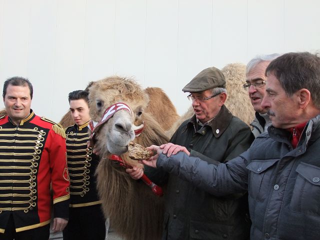 Nach zwei Jahren freudiges Wiedersehen mit "unserem" Kamel im Circus AEROS! Wir erschienen mit zwei Säcken Backwaren -gestiftet durch die Stadtbäckerei und Fa. Czech- sowie Mohrrüben von Uli Schwab, unserem Buben "Jenzig" schmeckte es vortrefflich! Die Wiedersehensfreude war nicht zu übersehen. Dann Galaauftritt in der Arena - unser Patenkind machte eine gute Figur, lassen wir uns darauf stolz sein - gute Patenarbeit zahlt sich halt aus. Auf baldiges Wiedersehen!