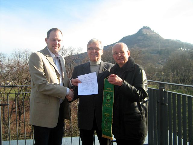 Wir Jenziger schenkten eine Urkunde für die Überschreibung einer Fussbodenplatte in der Stadtkirche St.Micheal zu Jena für die Lobdeburg-Gemeinde.