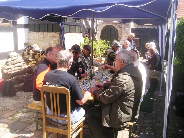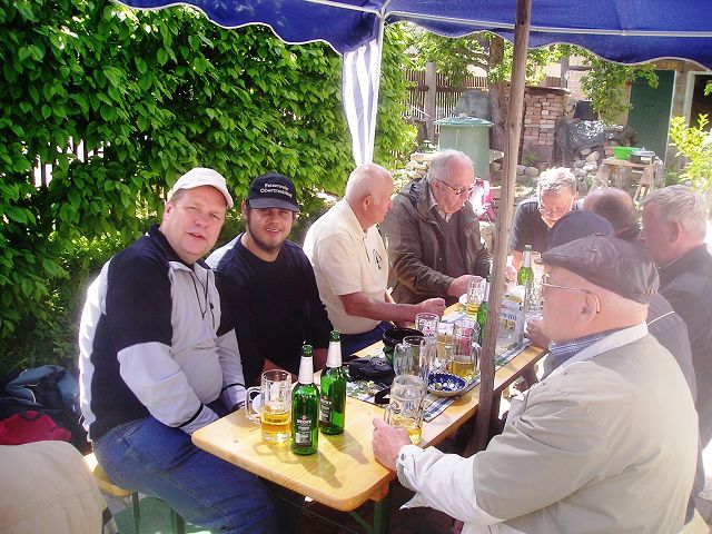 Tolles Wanderwetter, tolle Männer, mundendes Bier, wohlschmeckende Bratwurst - was braucht der Thüringer mehr? Bei Rundgesang und zünftigem Beiwerk zogen wir durch den Forst von West nach Süd und hielten Einkehr bei unserem Franz Linke im Gärtel. So hielten wir es bis gegen 18.00 Uhr (die letzten, nicht nach Hause drängenden Sänger!).