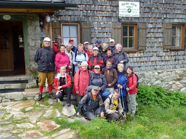 Nach langer Reise endlich in St.Jodok bei Sonnenschein eingetroffen, Quartierbezug und kleine Erkundungstour im Ort - wir teilten die Begeisterung mit Eberhard bezüglich der Eisenbahntrasse und -verkehr rund um den Ort Richtung Brenner. Am nächsten Tag ging es dann auf den Berg, nach ca. fünf Stunden enterten wir dann das Ziel "Geraer Hütte" -2.324 müN -mit fast letzer Kraft! Der Tagesrest bis zur Bettruhe leider dann im Regen. Das sollte auch am nächsten Morgen so sein - ein heißes "Mensch-ärger-Dich-nicht-Turnier" bis mittags erhitzte die Gemüter, an vier Brettern wurde gekämpft! Dann aber ging es gegen 13.30 Uhr auf zur Bergwanderung durch saftige Bergwiesen, über rauschende Bäche, über Geröll bis ca. 2.750 müN in die Schneebrettzone. Toll der Blick hoch auf die ca 3.500`er Klippen, blauen Himmel und natürlich auch zurück talwärts. Nicht zu bremsen waren HansJoachim, Ullrich und Joachim -sie stürmten dann noch hinauf zur "Scharte" ca. 2.970 müN mit Blick hinüber zum Zillertal! Am 14.Juli hieß es wieder Abschied nehmen, bei Sonnenschein stiegen wir hinab ins Tal, wurden dann auf halber Höhe teilweise von Niesel und Sonneschein begleitet. Ende gut, alles gut -gemütlich klang der Tag in der Gaststätte "GeraerHotel" aus und am 15.Juli ging es gegen 09.00 Uhr heimwärts. Dank an HansJochim für die gute Organisation sowie die Driver Bärbel, Mathias, Joachim und Wolfgang für die sichere Steuerung der Fahrzeuge. Zweiundzwanzig Jenziger werden noch lange von diesem Erlebnis zehren!