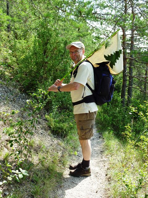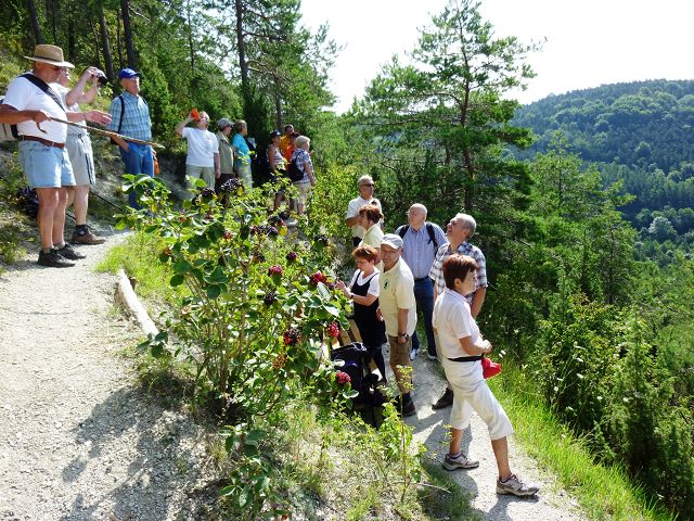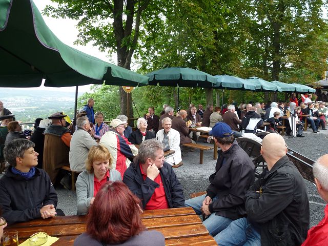 Bei herrlichstem Wetter erstiegen 35 Jenziger frohgestimmt den Berg - mit einem Schluck selbstgebrautem Schnapserl unserer Edelgard wurde an der Schutzhütte Kraft getankt für den Rest des Weges.
