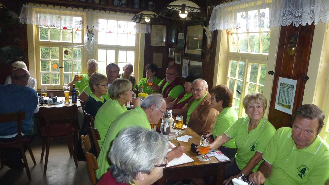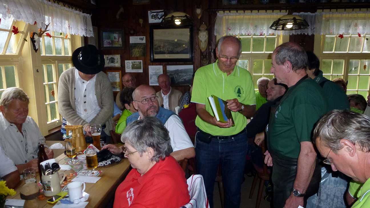 Wir verlebten ein paar nette Stunden in der Regenberg-Hütt`n, bei zünftiger Musik im nachbarlichen Gedankenaustausch. Leider ein verregneter Herbsttag, sodass wir die schöne Gegend nur wolkenverhangen geniesen konnten. Hans Joachim Ratzenberger überreichte als Gastgeschenk unser Jubiläumsbuch.