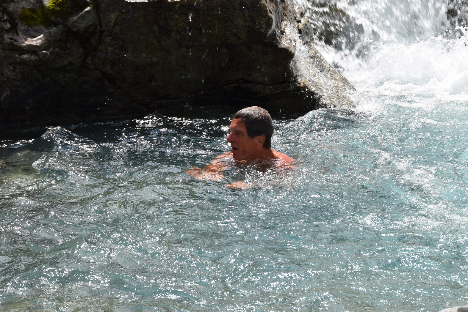 Eine Abkühlung holte sich auch Uli, er stieg schnell mal in das eiskalte Gebirgswasser.