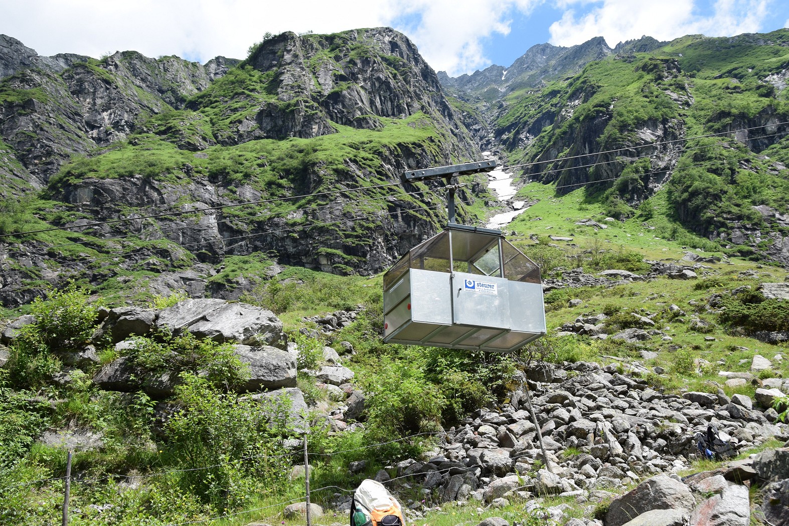 An derTalstation der Material-Seilbahn (1650 m) konnten wir unsere Gepäckstücke einladen,