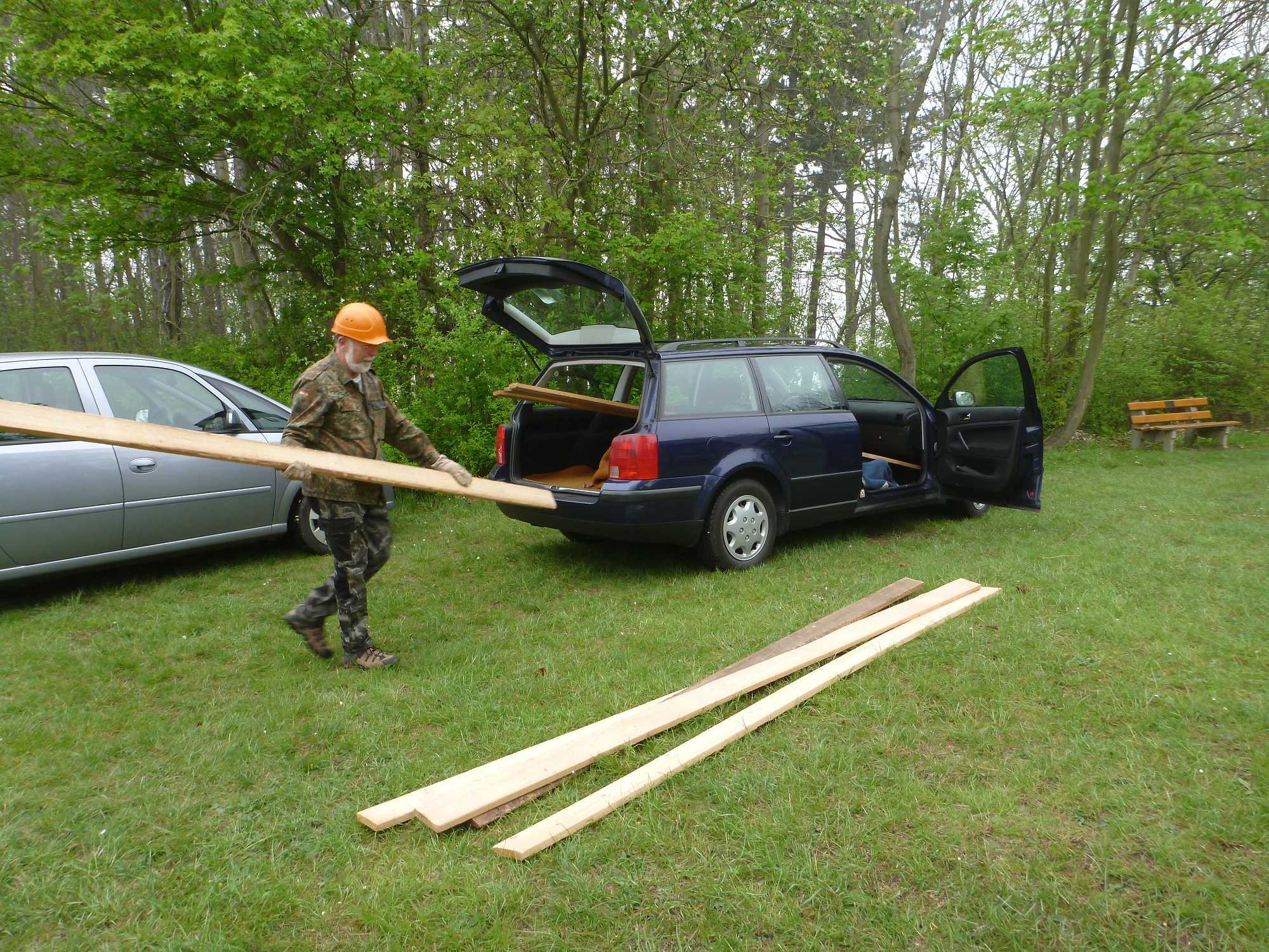 Sitzplätze auf der Jenzigwiese zu reparieren, so wurden Bretter hochgefahren;