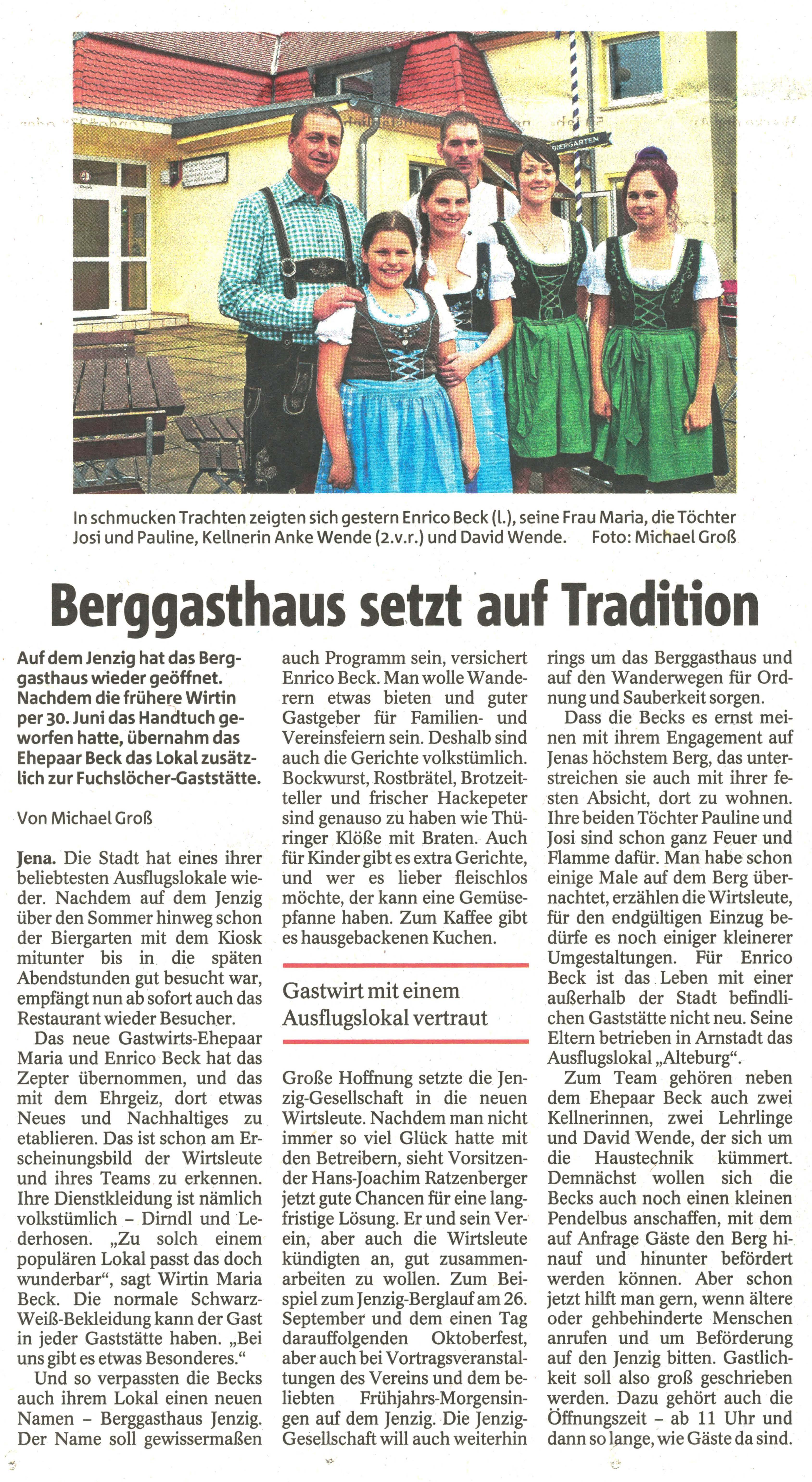 Ostthüringer Zeitung vom 29.08. 2015: Berggasthaus setzt auf Tradition