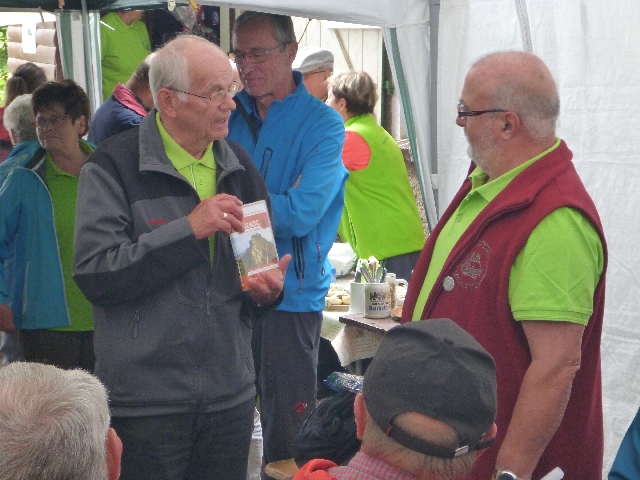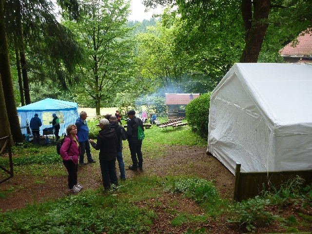 " 90 Jahre Heinrichsbacher Gemeinde". Die Bergfreunde haben alles getan um Gaumen und Gemüt der Gäste zu erfreuen. Da das Wetter nicht ganz mitspielte, gab es die Bratwürste im Zelt. Getränke, Fettbrote, Fischbrötchen und sogar Glühwein wurden an der Hütte ausgegeben.