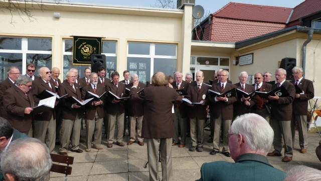 Die anwesenden Sänger des Jenzig-Chores stimmten mit fröhlichen Stimmungsliedern zum Auftakt ein.