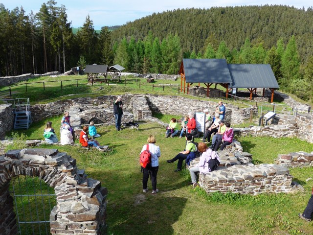 Nach ca. 1,5 Std. mussten wir Abschied nehmen und besuchten im nahegelegenen Weissbach das Heimatmuseum zur Würdigung der Wysburg, einer ehemaligen Wirkungsstätte des Lobdeburger Ritter-Geschlechtes. Hier holte uns der sommerliche Sonnenschein wieder ein. Aufwändige Ausgrabungen des Landesamtes für Bodenkunde finden hier statt und zeugen von beachtlicher Burgenbaukunst.