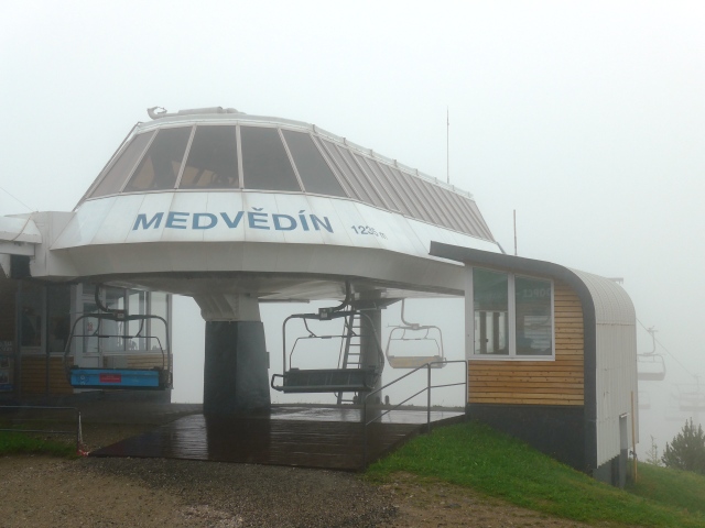 Der kommende Tag begann bei trüben Wetter. Unser Ziel war die Elbquelle in 1386m Höhe. Dazu nutzten wir den Sessellift zum Medvedin, Doch genau hier begann es zu regnen.