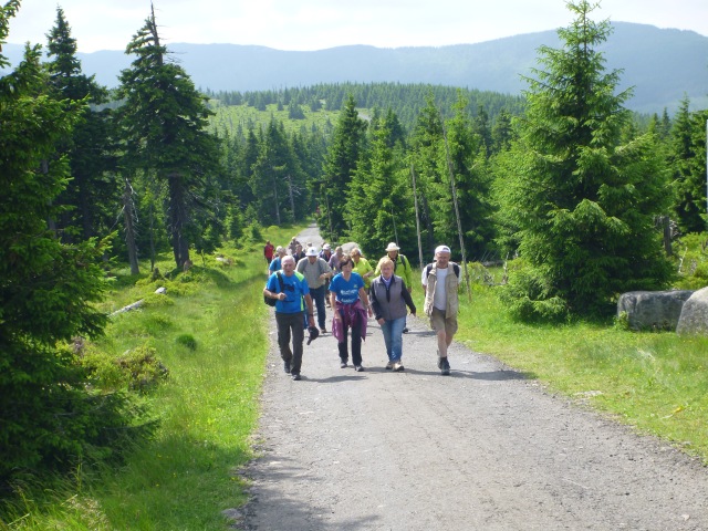 Nach einem reichlichen Frühstück fuhren wir mit dem Bus zum Ausgangspunkt unserer Wanderung, zur Spindler- Baude. Es folgte der Aufstieg auf den Freundschaftsweg, der unmittelbar an der Grenze zwischen Polen und Tschechien verläuft.