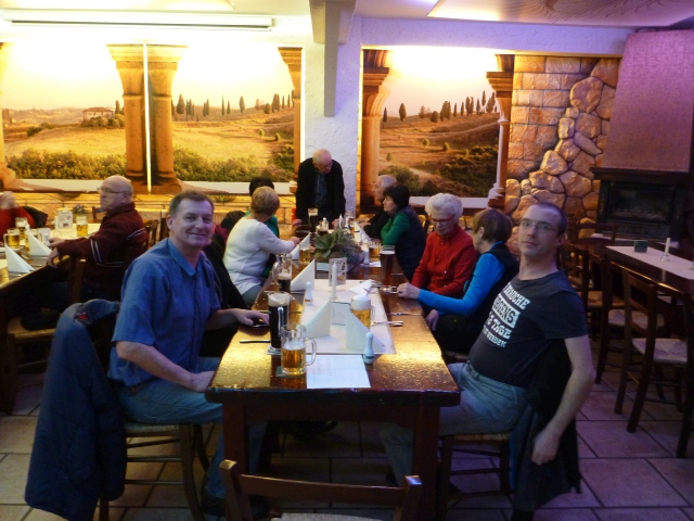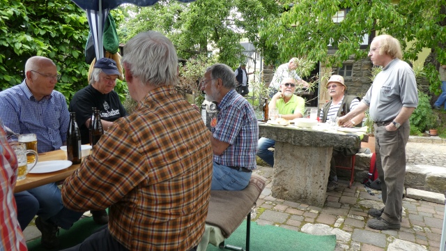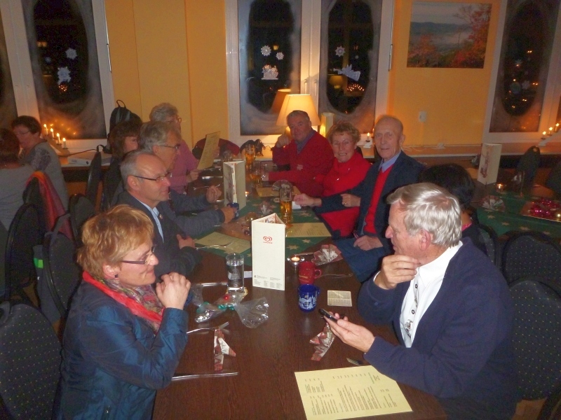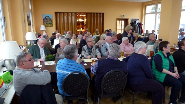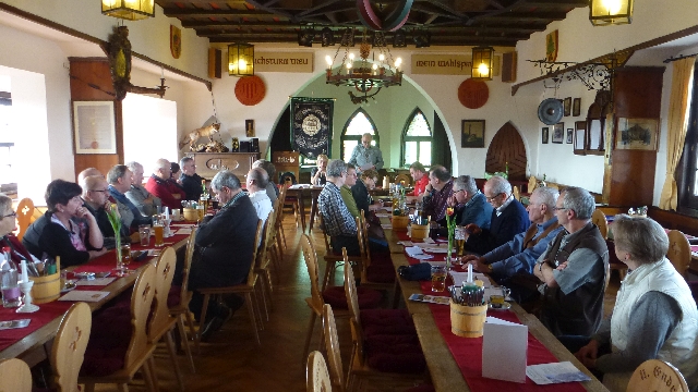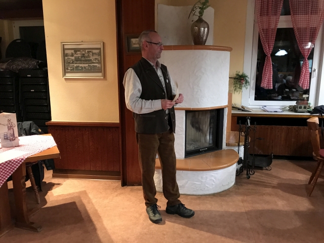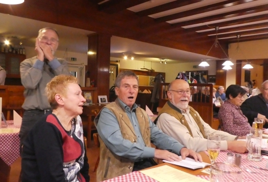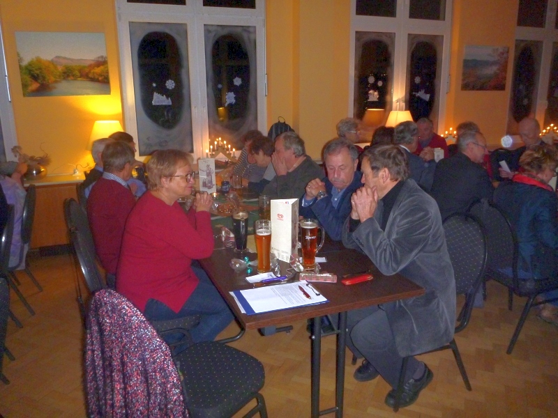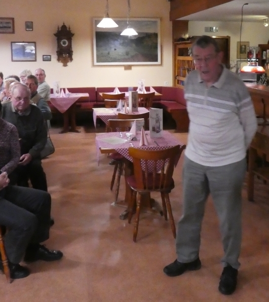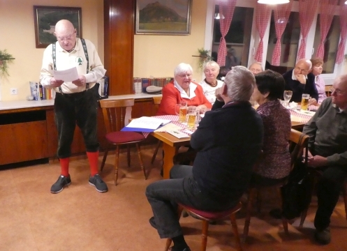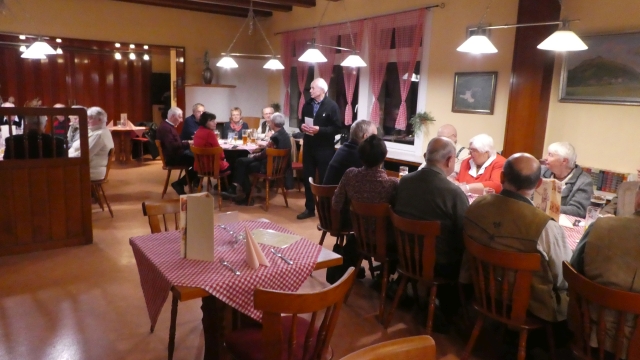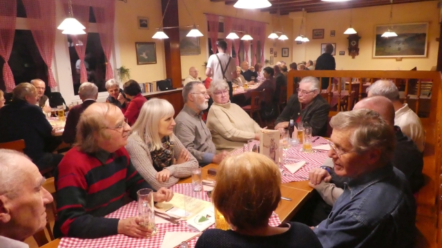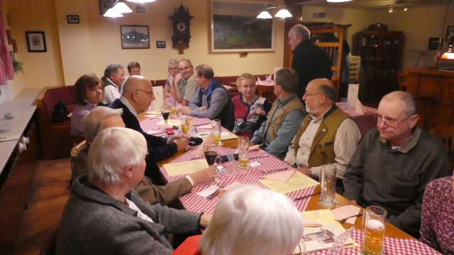 Nach dem Abend- essen ging es ganz zünftig zu, einige Anwesende trugen allerlei Geschicht-chen und humorvolle Reime vor, heraus-ragend wieder die Vorträge des Landgräfler`s,