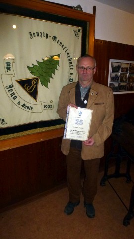 Ehrenurkunde für 25. Jahre Mitglied im Jenzig-Chor - herzliche Glückwünsche!
