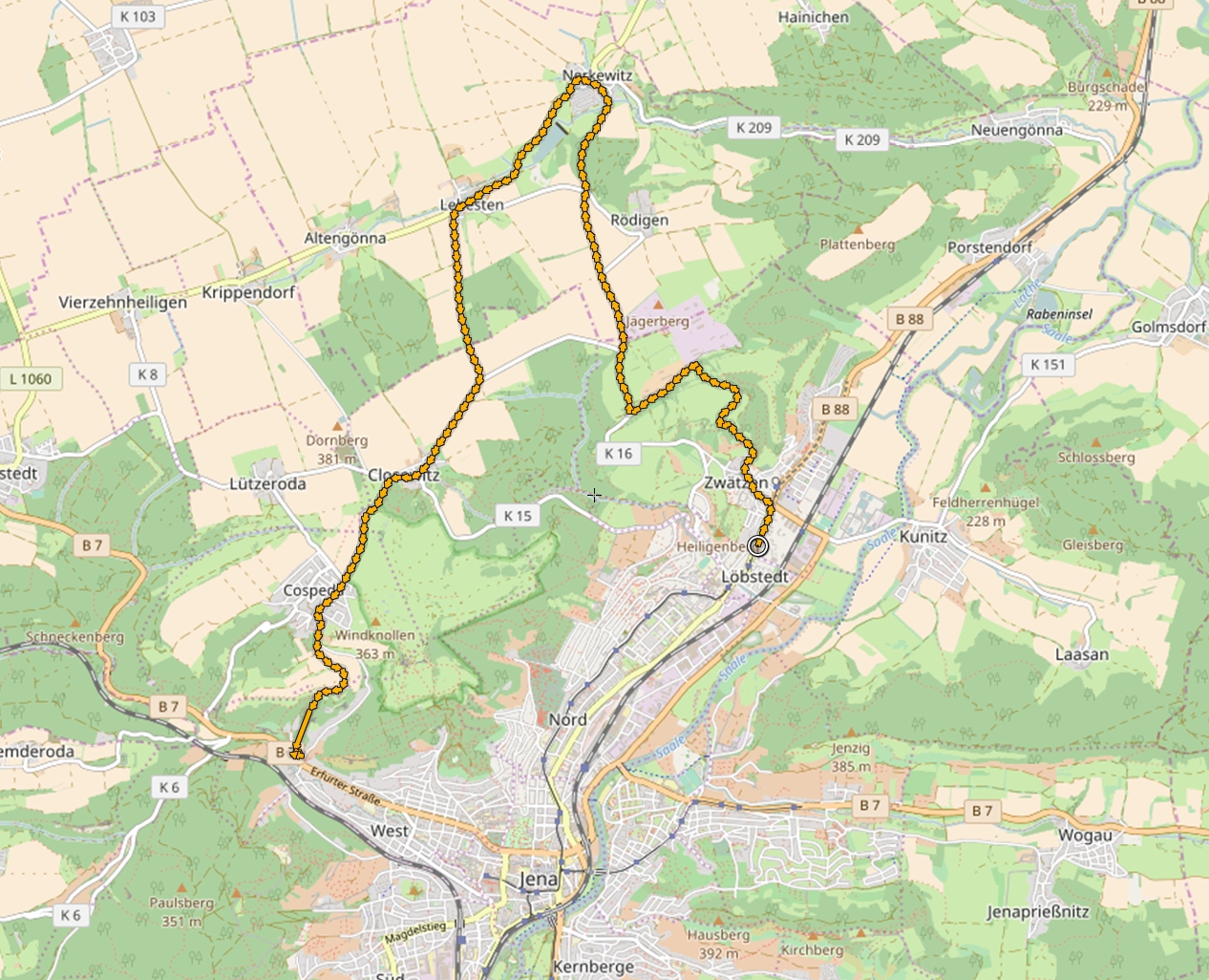 Treffpunkt war die Straßenbahn-Haltestelle Lobeda-West und es fanden sich 23 Jenziger zu der von unserem Wanderwart Holger geplanten Wanderung.