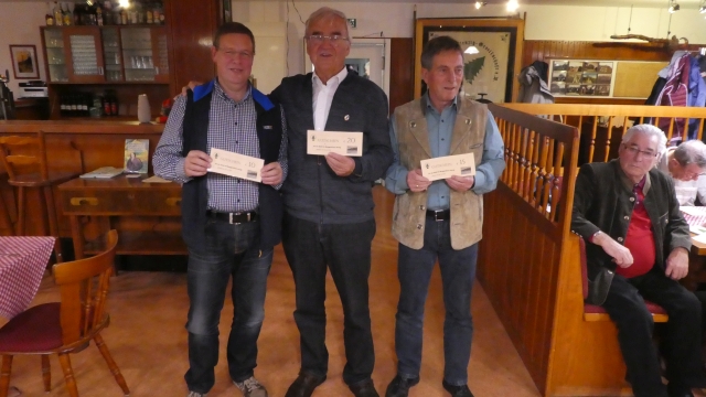 die Sieger (v.l.n.r.), Hans-Joachim Fabisch, Wolfgang Eifler und Ulrich Schwab wurden mit einem Verzehrgutschein ausgezeichnet. Ein gelungener Abend klang gegen 22:00 Uhr aus,