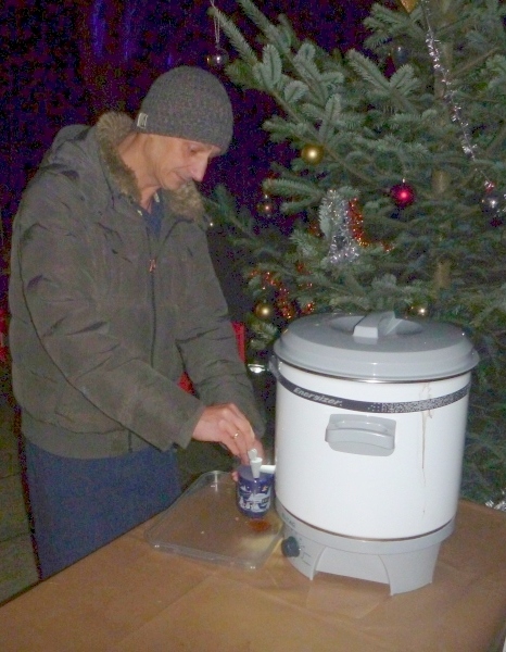 Pünktlich 18:00 Uhr schenkte Bergwirt Enrico auf der Terrasse wärmenden Glühwein zur Begrüßung der Gäste aus.