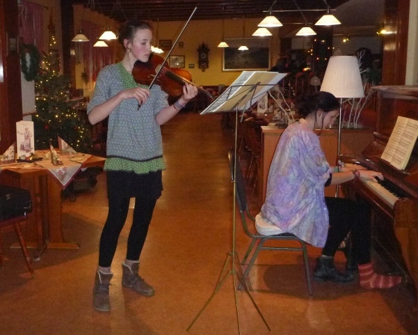 Im Programm folgten Weihnachtliche Musikstücke vorgetragen von Leonie - Geige und Mette am Klavier, Schülerinnen der Musikschule Jena.