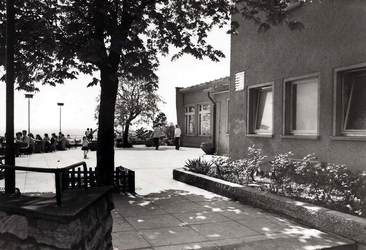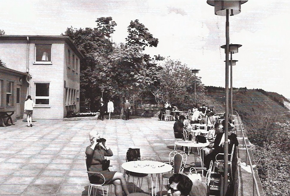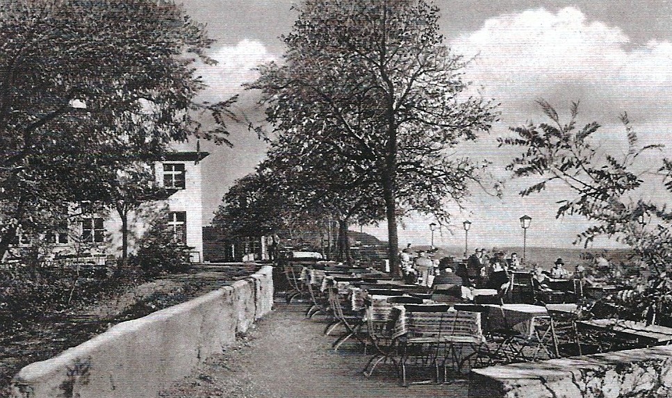 "Neuzeit" - die Terrasse um 1945 (Postkartenstempel):